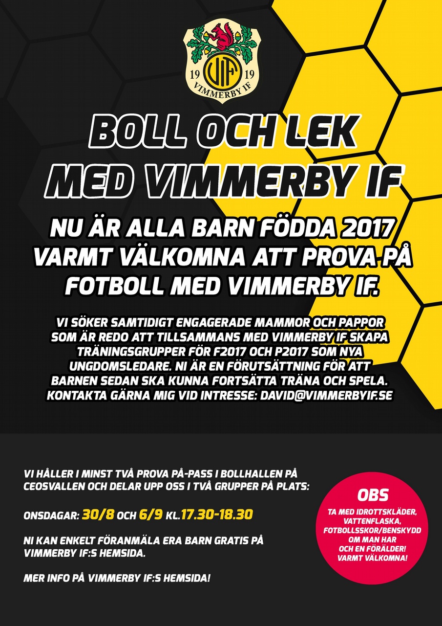 Lagom till att barn födda 2017 börjar förskoleklass så bjuder vi nu in alla som vill prova på fotboll i lekfulla former. Vi kommer hålla i minst två onsdagar, säkert något mer, och det är helt gratis att delta. Vi ser gärna att ni föranmäler er via länken, dels för att vi ska kunna nå er med information om fortsättning och dels för att få ett hum om hur många vi blir: