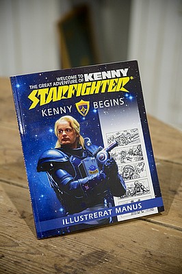 2 st illustrerade manusböcker från Kenny Starfighter, signerade av huvudrollsinnehavaren Johan Rheborg.
