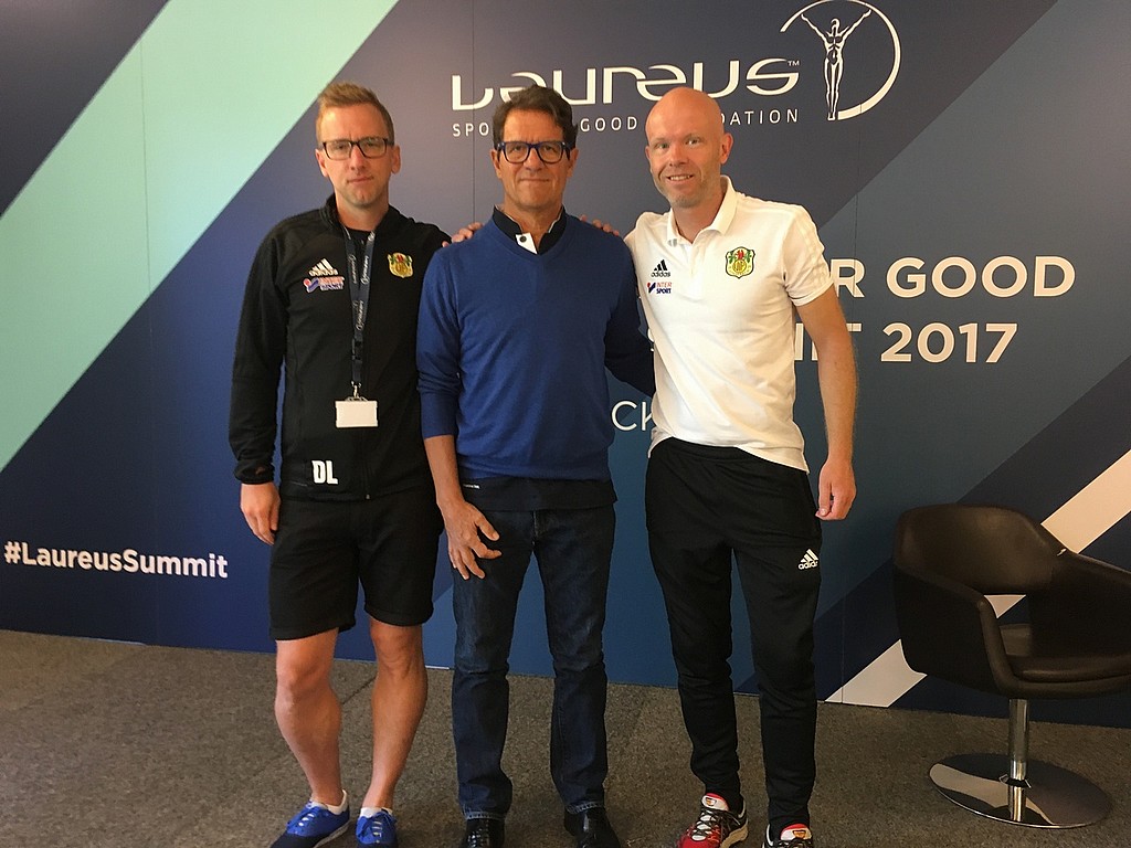 ”Vimmerby IF var utvalt som en av de svenska representanterna på konferensen Laureus Sport for Good European Summit. Det var första gången som tredagarskonferensen genomfördes i Sverige och på Bosön möttes över 40 olika organisationer som på olika sätt använder idrott i ett socialt syfte. En av Laureus ambassadörer Fabio Capello var också på plats och var imponerad över hur idrott används i Sverige och övriga Europa. Stefan Bragsjö och David Lindgren från Vimmerby IF fick även chansen att byta några ord med tränaren som nu är engagerad i hur idrott kan användas för att möta utmaningar i samhället. Konferensens svenska partner är Svenska Postkodstiftelsen”