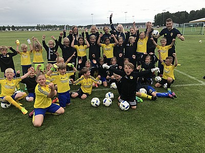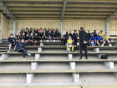 Idag är sista dagen på Landslagets Fotbollsskola. Vi har haft underbart väder hela veckan, även om det tar på krafterna att orka med fotboll hela dagen i värmen. Över 130 barn under veckan deltagit och skött det med bravur. Som avslutning idag kommer våra sex grupper få prata med elitdomaren Jonas Karlsson om Fair Play och domarens roll på planen, på bilden ser vi våra äldsta killar och tjejer ha genomgång på läktaren som börjar bli komplett. Vi har dessutom vår egna duktiga målvaktstränare Micke Krantz på plats för att träna lite målvaktsspel, på bilden ska han börja med de yngsta. Stort tack till alla våra unga ledare som gjort en fantastisk insats som ledare hela veckan. Stort tack även till våra samarbetspartners med ICA Kvantum i spetsen som hjälper oss hålla nere kostnaderna så att så många som möjligt kan få delta!