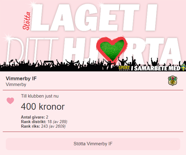 Aftonbladet kör en drive just nu, de dubblar pengen till klubben, häng gärna på. Vi i styrelsen har redan hängt på, ju fler vi blir ju fler pengar.