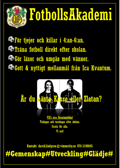 Den här veckan startar terminens FotbollsAkademi. Imorgon blir det uppstart med lite info om upplägget för nya och gamla elever. Beroende på kylan kommer vi anpassa verksamheten efter väder första veckorna innan våren är här på allvar, kan bli mer tid i klubblokalen till att börja med vid låga temperaturer. Tisdagar kommer sedan innehålla mer teknikövningar och torsdagar med spelövningar. Längre fram kommer vi också åka och titta på en allsvenska match tillsammans. Varmt välkomna!