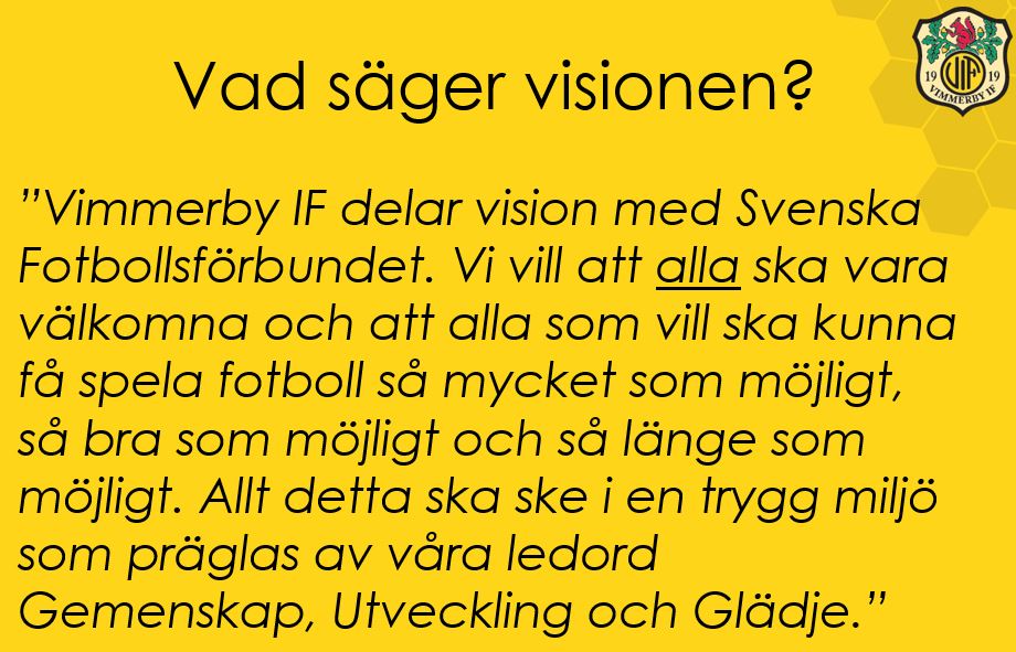 Ge tillbaka till fotbollen som gett mig så mycket, samhällsnyttan, idrottens fostran, för mina barn (och barnbarns skull), roligaste sporten, gemenskapen och att det ger så mkt energi och glädje tillbaka, stoltheten, skapa livslånga intressen, vuxit upp med föreningen, föreningsliv är viktigt, sund livsstil för barn och ungdomar, ett "nytt" VIF och föreningsliv från 2015, proffsig barn- och ungdomsidrott, laget före jaget-fostran och människorna som finns i vår förening!