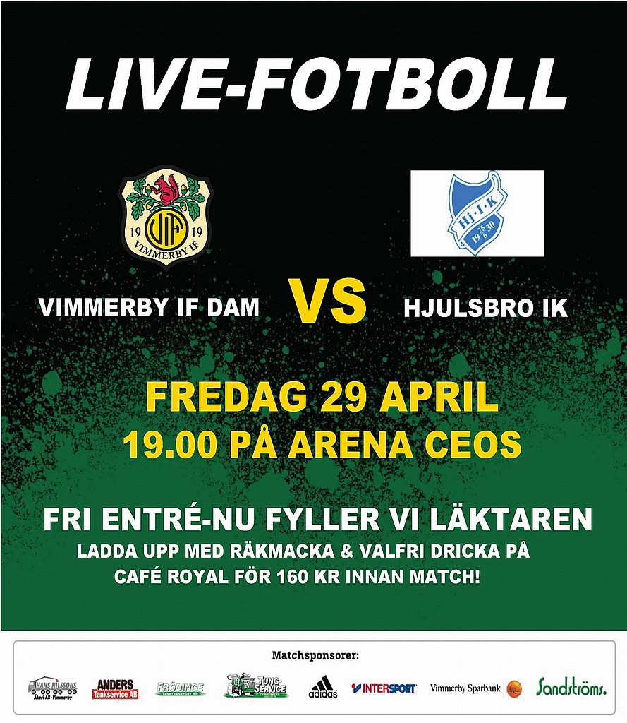 På fredag bjuder vi på fri entré igen för att så många som möjligt ska få chansen att upptäcka hur kul det är att kunna gå och se bra fotboll live igen. Ett spännande lag fyllt med rutin och talang möter Hjulsbro IK på fredag. Ladda upp på Café Royal med prisvärda erbjudanden efter jobbet!