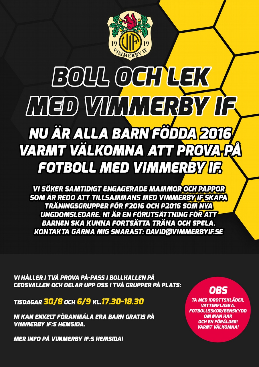 Vimmerby IF håller i första passen och hoppas under tiden komma i kontakt med engagerade föräldrar som vill skapa meningsfull fritid för sitt och andras barn genom att bli ungdomsledare- det roligaste vuxenuppdrag som finns att få och en förutsättning för fortsatt verksamhet.