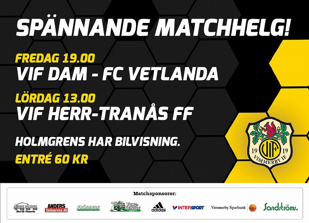 I helgen är det fullt med spännande matcher på Arena Ceos. På fredag vill damerna ta revansch i sin viktiga match mot FC Vetlanda och på lördag spelar herrarna toppmatch mot Tranås FF. På lördag visar även Holmgrens upp bilar och efter matchen har Christer Erikssons mannar i J18 en tuff match mot Lindsdal på samma plan vid 15.15 för er som vill se nästa generations seniorspelare!