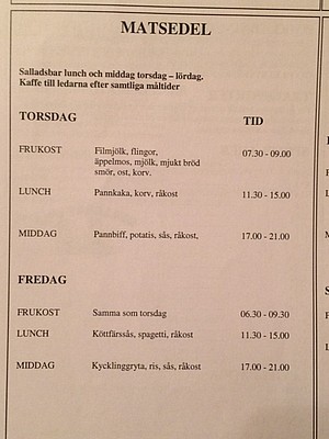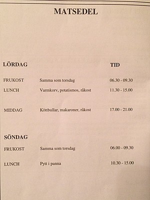 - lagen som ska äta ska äta på den tid som står i schemat, annars får inte alla rum i matsalen, om nån kommer för tidigt ber vi dem vänta