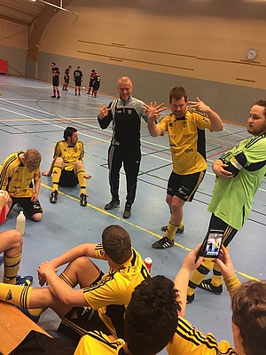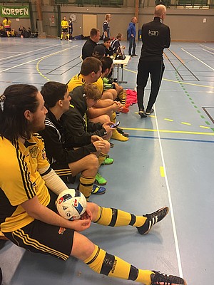 Med tanke på att div 3/5-laget peppade och hejade fram det andra VIF-laget till ett SM guld va känslan och attityden där när de själva skulle spela ren final. Motståndarna var lite konfunderade över att vi inte hade nån målvakt på uppvärmningen, Christian hade ju en stukat och svullen och regnbågsfärgad frist men kunde stå i mål i finalen så vi kunde flytta ut Lukaz som utespelare på det sättet fick vi en avbytare vilket vi inte hade haft på hela cupen. - va lite folk de är, har de ingen målvakt hörde vi de diskutera. Vi vann psykkriget för de trodde ju att de va bättre än oss efter gruppmatchen som de vann med 1-0.