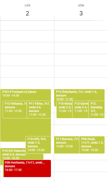 Nästa helg,2-3/9, är det supertight som ni ser på bilden ovan. På söndagen har jag löst det genom att P13-12 och F10-F13 delar omklädningsrum. På lördagen kan poolspelet byta om i egna omklädningsrum, sen kanske lägga in sina grejer i bollhallen och efteråt duscha utifrån att det blir ledigt, men är dammatch 13.00 och ungdomsmatch 14.00, men 5-6 ledigt fram till 14.00. F08-matchen 16.00 kanske måste flyttas fram till 17.00, ser ingen lösning med omklädningsrum just nu tyvärr.