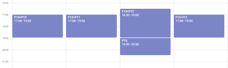 Återkoppla till mig när ni drar igång så att övriga lag som är intresserade av tider vet hur länge det är tomt. Kan ju sen bli justeringar sen till våren då fler lag kan tillkomma och då ryker i första hand lagen som har två vardagstider (F12/P12) som får komplettera med helgtid.