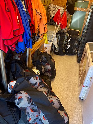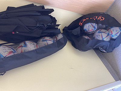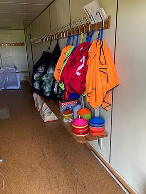 Vi hjälps åt att hålla ordning, en hel del nya bollar och koner osv är utplacerat. Hör av er om något saknas eller skulle behövas. Jag har inte pumpat upp alla bollar, men sorterat och kasserat lite.