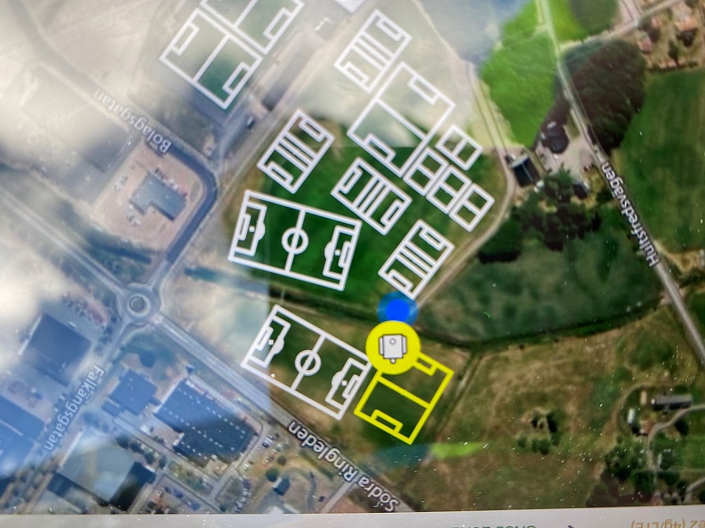 Bett kommunen om att en bild på hur planerna ser ut från och med idag, den som är gulmarkerad är 9v9-planen på andra sidan ån eftersom den kritades när bilden togs. Konstgräsets kritning kan ni ignorera.